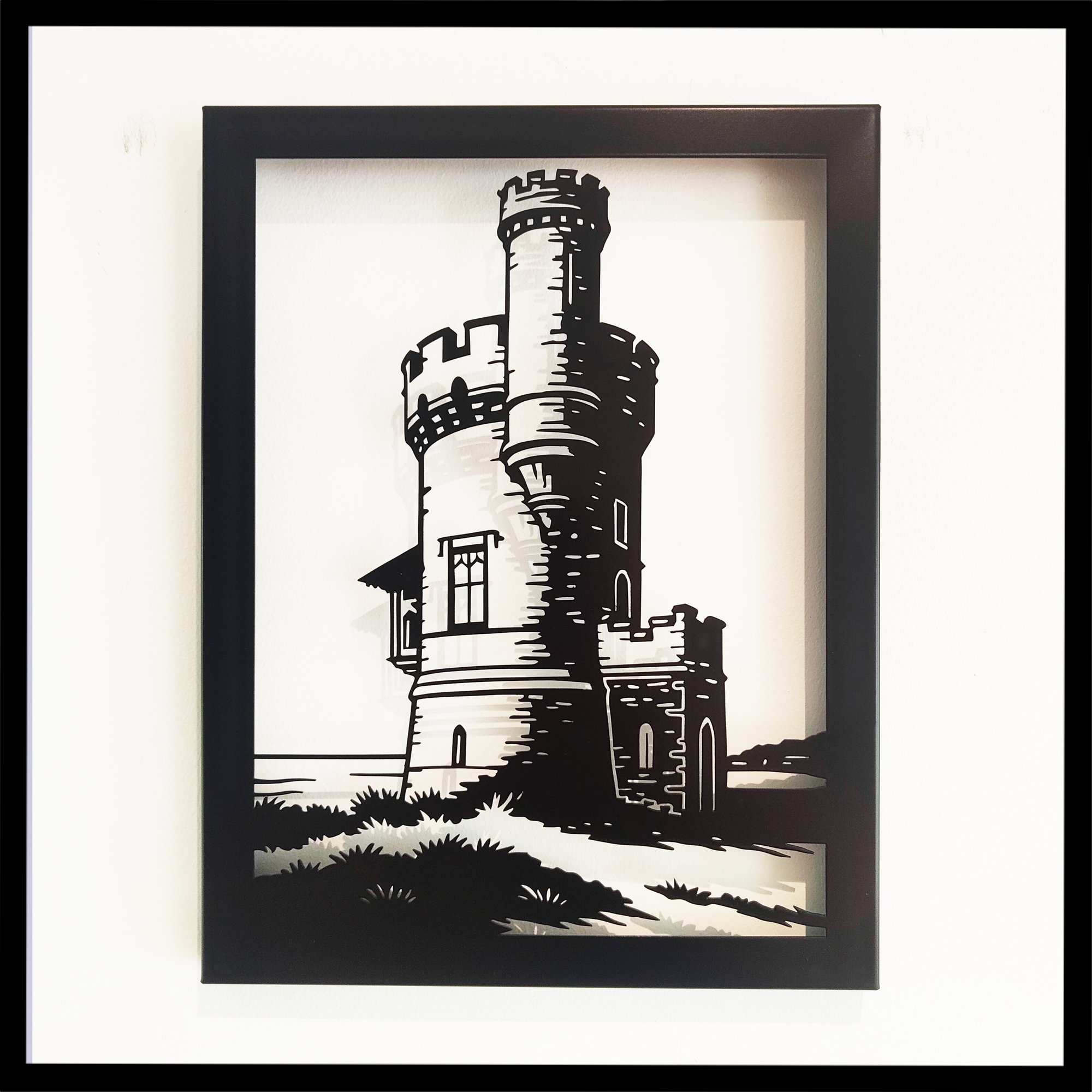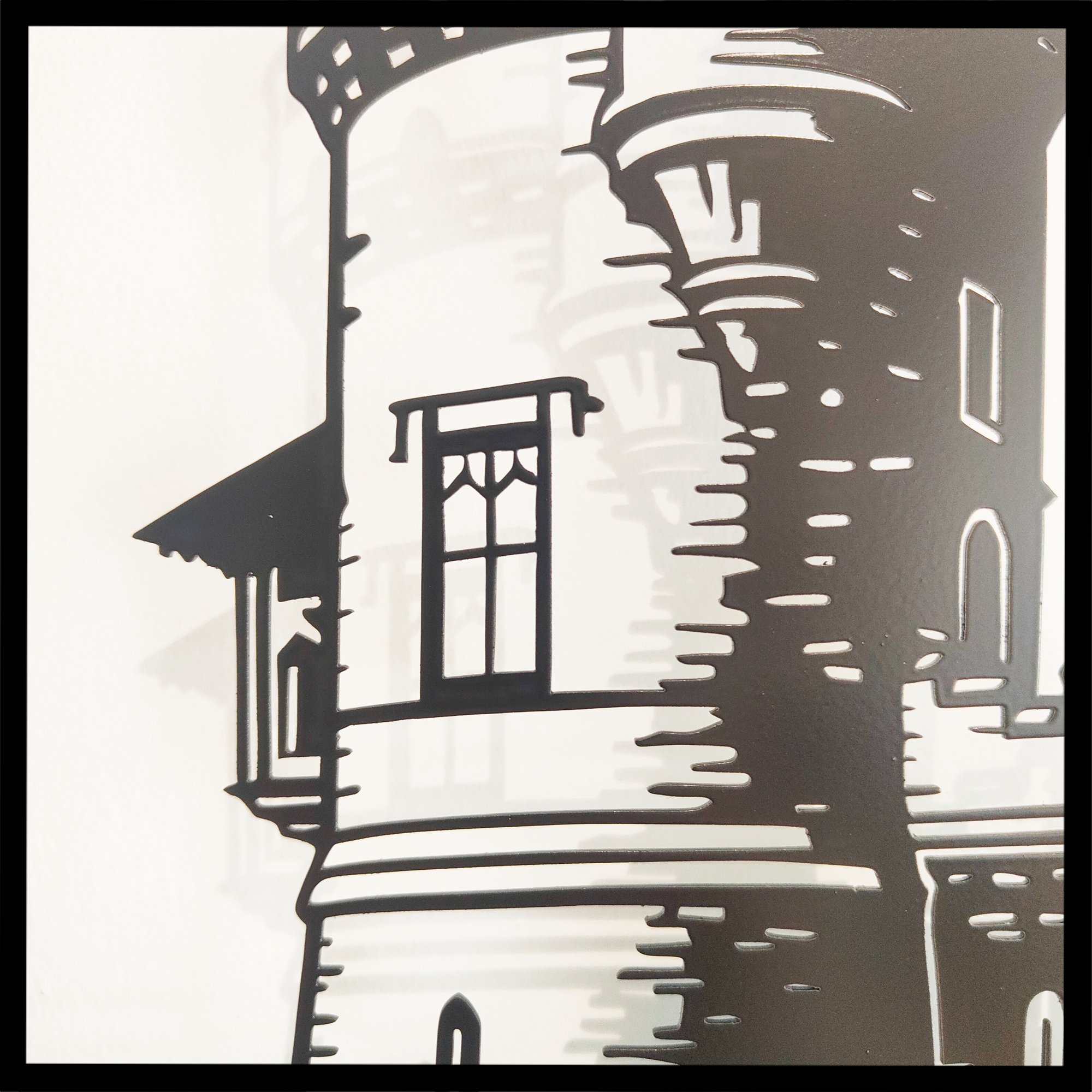Bring a piece of coastal history into your home with “Appley Tower” — a striking steel artwork inspired by the famous Victorian-era tower overlooking Ryde Beach on the Isle of Wight. Its distinctive battlements and elegant structure are captured in bold, modern linework, creating a powerful silhouette that stands proudly against the shoreline.